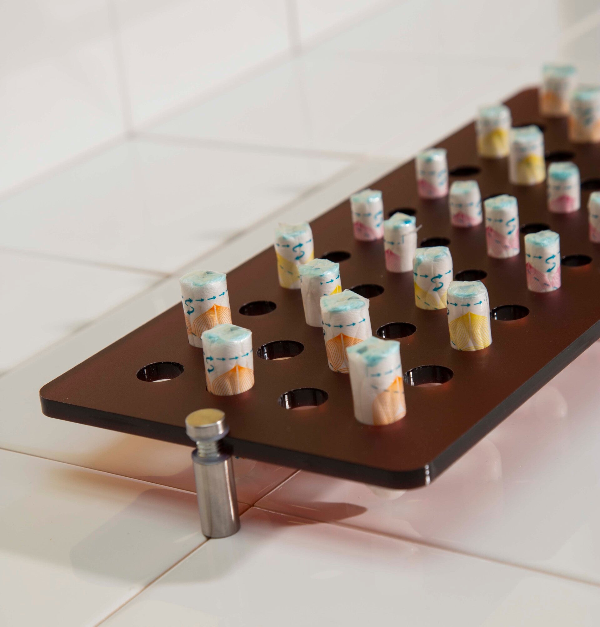 In plaats van menstruatieproducten te verbergen uit schaamte, maakt Taboo ze bewust zichtbaar. Het object is functioneel, elegant en vormt een subtiel statement.